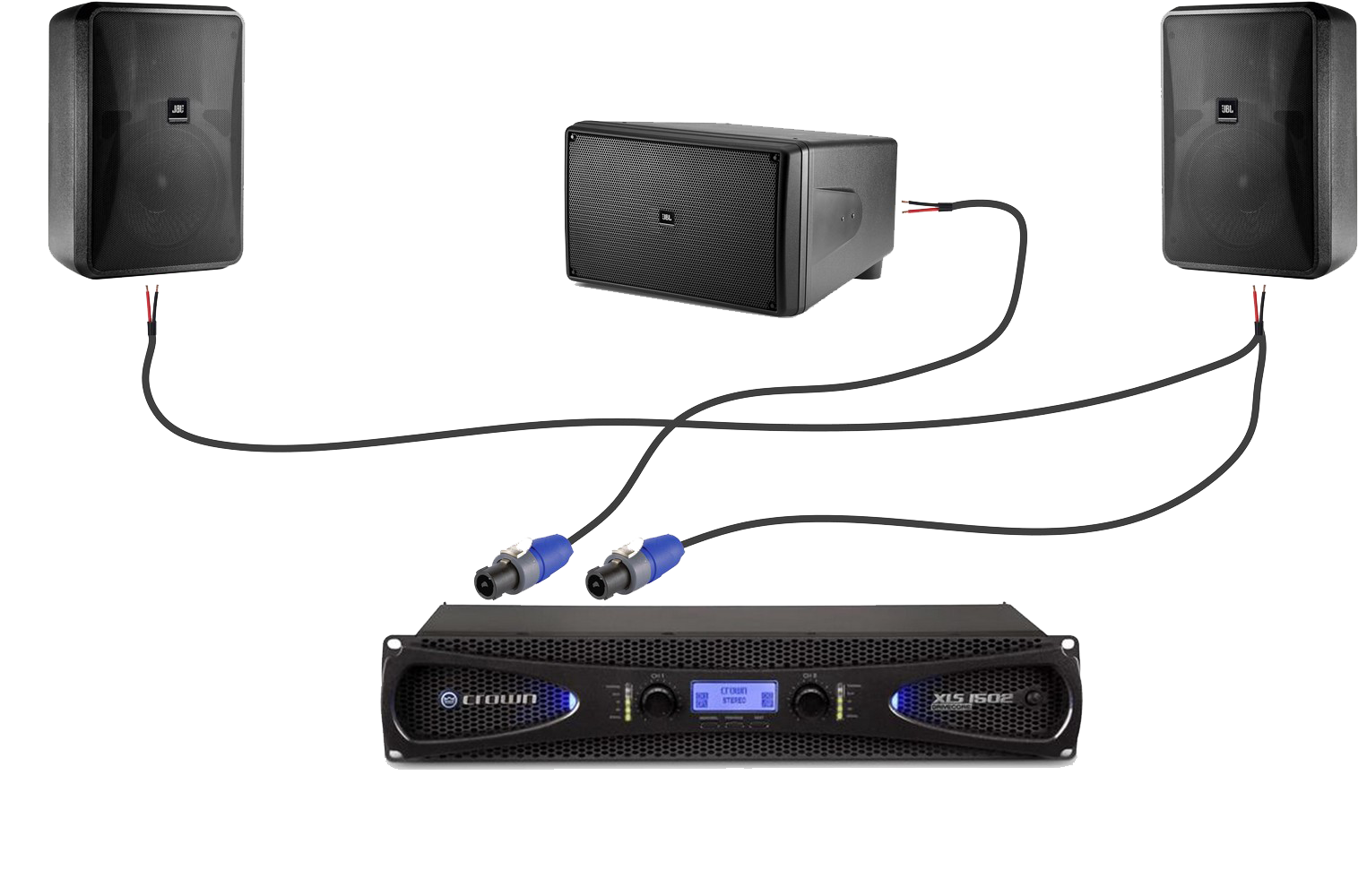 Звукове оформлення бару площею до 100 кв. м можна здійснити на основі акустичних систем JBL Control Series. Цей комплект складається з двох настінних акустичних систем JBL Control 28-1 та сабвуфера JBL Control SB2210. Система працює за допомогою підсилювачів з кросовером Crown XLS1502, які водночас відповідають за налаштування звуку.