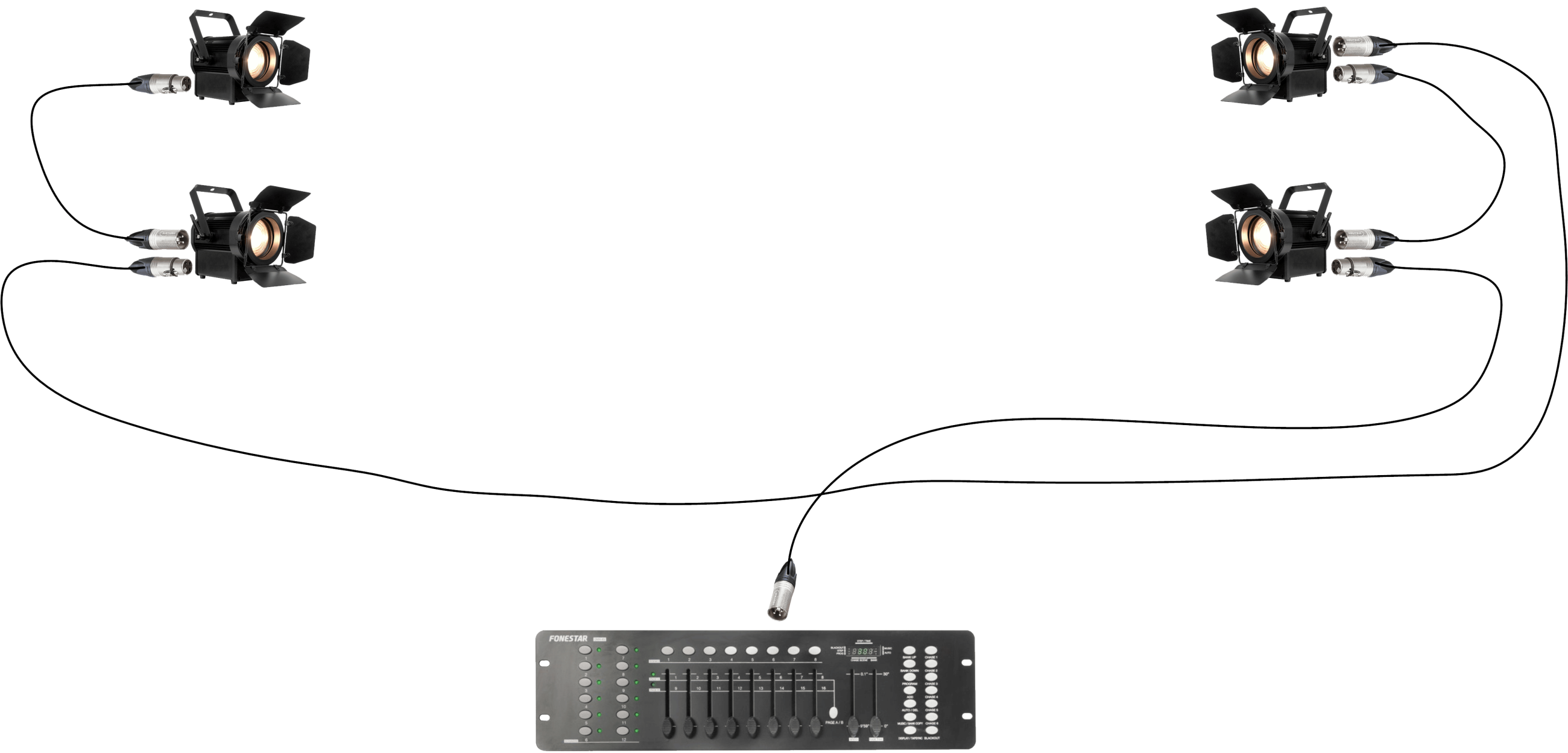 Fonestar DMX-83 – світловий контролер, що дозволяє швидко та легко здійснювати управління й програмування заходу, керуючи обладнанням, підключеним по одній лінії.